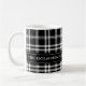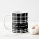 Personalise this stylish mug with your family name and date established or other custom text. Background pattern features a classic black and white tartan plaid pattern. A great accent for the fall and Christmas holidays.