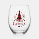 Modern Farmhouse Buffalo Plaid Merry Christmas Stemless Wine Glass