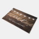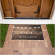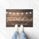 Modern Farmhouse Rustic Family Monogram Doormat - features gorgeous script typography on a rustic wood background with star and snow string lights hanging overhead. Doormat is personalised with your family name. Perfect for the holidays and into the winter months. Makes a very thoughtful gift.