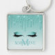 Modern Fashionable Monogram Teal Glitter Lashes Key Ring