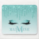 Modern Fashionable Teal Glitter Lashes Monogram Mouse Mat