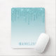 Modern Fashionable Trendy Aqua Glitter Drip Mouse Mat