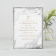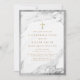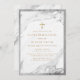Gorgeous marbled background design with faux gold foil cross, silver bold border and details, elegant modern simple design, stylish and chic, great confirmation invitations.