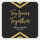This elegant square sticker features a chic geometric chevron and the word "Ten Years Together" in faux gold against a black background. It's great for a 10th wedding anniversary celebration. Check out matching invitations and items here http://www.zazzle.com/collections/modern_faux_gold_chevron_celebration_collection-119531050277382712?rf=238364477188679314