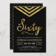 Modern 60th Birthday invitation featuring an elegant geometric chevron and the word "Sixty" in faux gold against a black background. Card includes a matching pattern back side. Check out matching items here http://www.zazzle.com/collections/modern_faux_gold_chevron_celebration_collection-119531050277382712?rf=238364477188679314