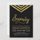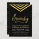 Modern 70th Birthday invitation featuring an elegant geometric chevron and the word "Seventy" in faux gold against a black background. Card includes a matching pattern back side. Check out matching items here http://www.zazzle.com/collections/modern_faux_gold_chevron_celebration_collection-119531050277382712?rf=238364477188679314