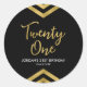 This modern round sticker features an elegant geometric chevron design and the words "Twenty One" in faux gold against a black background; perfect for a 21st Birthday Party. Check out matching invitations and items here http://www.zazzle.com/collections/modern_faux_gold_chevron_celebration_collection-119531050277382712?rf=238364477188679314