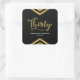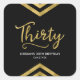 This chic square sticker features an elegant geometric chevron and the word "Thirty" in faux gold against a black background. It's great for a 30th birthday celebration. Check out matching invitations and items here http://www.zazzle.com/collections/modern_faux_gold_chevron_celebration_collection-119531050277382712?rf=238364477188679314