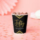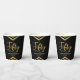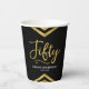 These chic paper cups feature elegant geometric chevron and the word "Fifty" in faux gold foil against black background. It's great for a 50th birthday celebration.