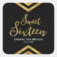 This modern square sticker features an elegant geometric chevron and the word "Sweet Sixteen" in faux gold against a black background. Check out matching invitations and items here http://www.zazzle.com/collections/modern_faux_gold_chevron_celebration_collection-119531050277382712?rf=238364477188679314