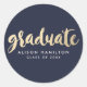 Celebrate your graduation with custom graduation stickers. The design features "graduate" in a faux gold foil brush font, placeholders for text, and a navy background. The modern graduation stickers are perfect to use for envelope seals, party favours, scrapbooks, and more. Change the background to a colour of your choice with the Customise button.