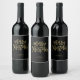 Modern Faux Gold on Black | Merry Christmas Wine Label
