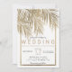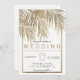 Modern simple faux gold palm tree watercolor with simple typography with gold frame , a trendy and tropical wedding theme on palm tree leaf.