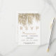 Modern simple faux gold palm tree with simple typography, a trendy and tropical rsvp wedding party on palm tree leaf.