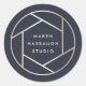 Brand your photography business with these elegant personalised stickers, perfect for sealing your client deliverables, mailings and more. Chic design for photographers features an abstract camera lens logo in faux gold foil, with your name or business name inside in modern white lettering on a rich navy blue background.