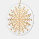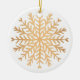 This ornament features a modern faux gold snowflake illustration. Perfect for your holiday decorating needs!