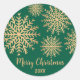 Modern Faux Gold Snowflake Green Merry Christmas Classic Round Sticker