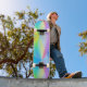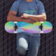 Modern faux iridescent pastel rainbow coloured skateboard