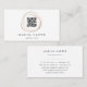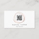 Striking business cards feature an abstract element in faux rose gold, encircling a customisable QR code. Personalise with two custom text fields beneath for your name and title or business name. Add your full contact details to the reverse side. Suitable for any occupation; example shown for hair and makeup artists. NOTE: THERE IS NO GOLD FOIL ON THIS PRODUCT. The rose gold effect is created using subtle colour variations that mimic the look of foil.