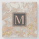 Modern Faux Rose Gold Marble Swirl Monogram Stone Coaster
