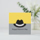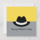 Stylish modern and artistic design features black fedora hat with white band on a grey and yellow colorblock background