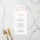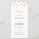 Joyful | Modern Confetti Wedding Menu Personalized Rack Card A playful and customisable modern confetti wedding menu with colourful and fun confetti, perfect for a non-traditional or offbeat celebration. Clicking in the "Customise it" button you can go to the design tool, where you can change or add text and more. I do offer free customization service, contact we me if you have any request at margherita@bluebirdinvites.com.