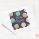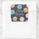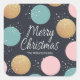 A modern Christmas sticker with colourful festive - gold glitter, pink, and blue - dots. The phrase "Merry Christmas" is set in an whimsically handwritten font.