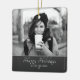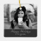Modern Festive Script Custom Photo Holiday Ceramic Ornament