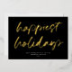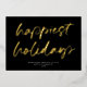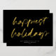 This modern yet festive business holiday card features a large calligraphy script "happiest holidays" in raised gold foil over a black background. The back of the card is also black. **ALL colours are customisable - background colour, text colour, even the foil. Make a fabulous impression on your clients and business contacts with a real foil holiday card this year!