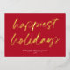 This modern yet festive business holiday card features a large calligraphy script "happiest holidays" in raised gold foil over a red background. The back of the card is also red. **ALL colours are customisable - background colour, text colour, even the foil. Make a fabulous impression on your clients and business contacts with a real foil holiday card this year!
