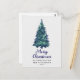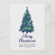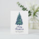 Hand painted in watercolors, single conifer tree on light grey background, with editable season greetings text and names, bringing festive spirit and good wishes
