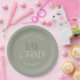 These modern fete green yay grad graduation paper plates are perfect for a simple grad party. The design features elegant boho typography with a touch of sophisticated style in muted and minimalist light sage green.