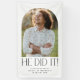 This modern fete he did it photo arch graduation banner is perfect for a simple grad party for him. The design features elegant boho typography with a touch of sophisticated style in minimalist black and white.