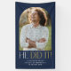 Modern Fete Navy Gold He Did It Photo Graduation Banner