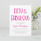 Celebrate your 50th birthday in elegant style with this modern art deco Fifty and Fabulous pink text 50th birthday party invitation. Personalizable with your name and fiftieth birthday party celebration details, this modern combination of bright pink art deco font, clean serif typography and a playful script for the birthday honoree's name makes for a fun yet sophisticated look. All text colors can be changed to anything you wish using the edit menu - a fabulous choice for your fiftieth celebration!