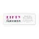 Modern Minimal Fifty and Fabulous pink and black 50th birthday return address label that you can personalise and send out for your fiftieth birthday party celebration. The words "Fifty and Fabulous" are set using trending bold font typography. . Text colours can be changed using the edit menu.