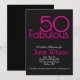 A distinctive Black with pink and white text 50th birthday invitation you can personalize and send out for your fiftieth birthday party celebration. The words "50 and Fabulous" are set using popular typography. Other colors and patterns are available.