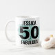 If you'd like to see this print in another colour background, please send me a message and I will see what I can do! Personalised Teal Blue Black White Watercolor Modern Fifty And Fabulous 50th Birthday Coffee Mug
