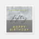 Modern Fifty Grey Script 50th Birthday Party Napkins. An elegant and modern birthday party napkin for a man who is celebrating his fiftieth birthday. The design has dark and bright grey background texture and script in dark grey, white and yellow colours. Personalise the napkin with your name. Change the text Happy birthday if you want and make your own celebration paper napkins.