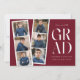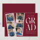 Trendy graduation announcements featuring a filmstrip with 6 square photos of the graduate. "Grad" is displayed in white modern lettering with a burgundy background (editable colour). Personalise the front of the multi-photo graduation announcement by adding the graduate's name, school name, and graduation year. The announcement reverses to display additional text such as graduation details, future plans, party information, etc. The stylish graduation announcement is perfect for high school and college graduates.