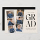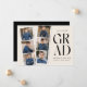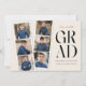 Trendy graduation announcements featuring a filmstrip with 6 square photos of the graduate. "Grad" is displayed in black modern lettering with a cream-coloured background. Personalise the front of the multi-photo graduation announcement by adding the graduate's name, school name, and graduation year. The announcement reverses to display additional text such as graduation details, future plans, party information, etc. The stylish graduation announcement is perfect for high school and college graduates.