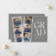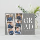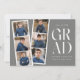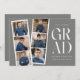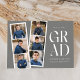 Trendy graduation announcements featuring a filmstrip with 6 square photos of the graduate. "Grad" is displayed in white modern lettering with a dark grey background (editable colour). Personalise the front of the multi-photo graduation announcement by adding the graduate's name, school name, and graduation year. The announcement reverses to display additional text such as graduation details, future plans, party information, etc. The stylish graduation announcement is perfect for high school and college graduates.