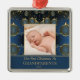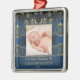 First Christmas as Grandparents or other family member, blue and gold ornament. Classy and stylish modern design featuring gold ornaments set into a pattern.