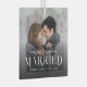 This modern minimalist personalised newlyweds Christmas glass ornament features a photo template with elegant stylish overlay typography “our first Christmas MARRIED,” with name and year.