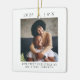 at christmass as a hanging decration for the chritmass tree.. its white porcline or cramic but very well made with added photo on one side.. also has a lovley red bag to keep it in.. execlent printed text in bold and black stands out well aganst the blue background of the photo.