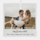 A modern "merry and married" one photo template glass holiday ornament. Names in script with customisable text.