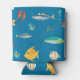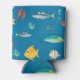 Modern Fish and Seahorse illustrated Pattern Blue Can Cooler