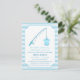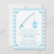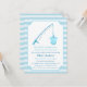 It's REEL! A baby boy is on the way! Invite your guests over to splash mummy to be with love with this elegant, contemporary and modern fishing themed baby shower. It is in a blue hues colour palette to signify the soon arrival of a baby boy! It has a fishing rod reeling in not a fish but amusingly, a baby bodysuit with a simple fish icon. Personalise with your baby shower details. Background of pastel blue stripes.
