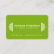 Stand out with this cool and modern business card. Perfect for personal trainers, coaches and other fitness professionals, it features a vivid green background along with a barbell image framing your business name. With room for contact info and more text on the complementary slate blue back, this trainer business card is the perfect design to grab clients' attention.