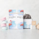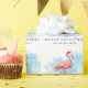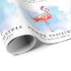 A modern watercolor splash in blue and purple with pink flamingo wearing santa hat wrapping paper. Make it personal by adding your family name.